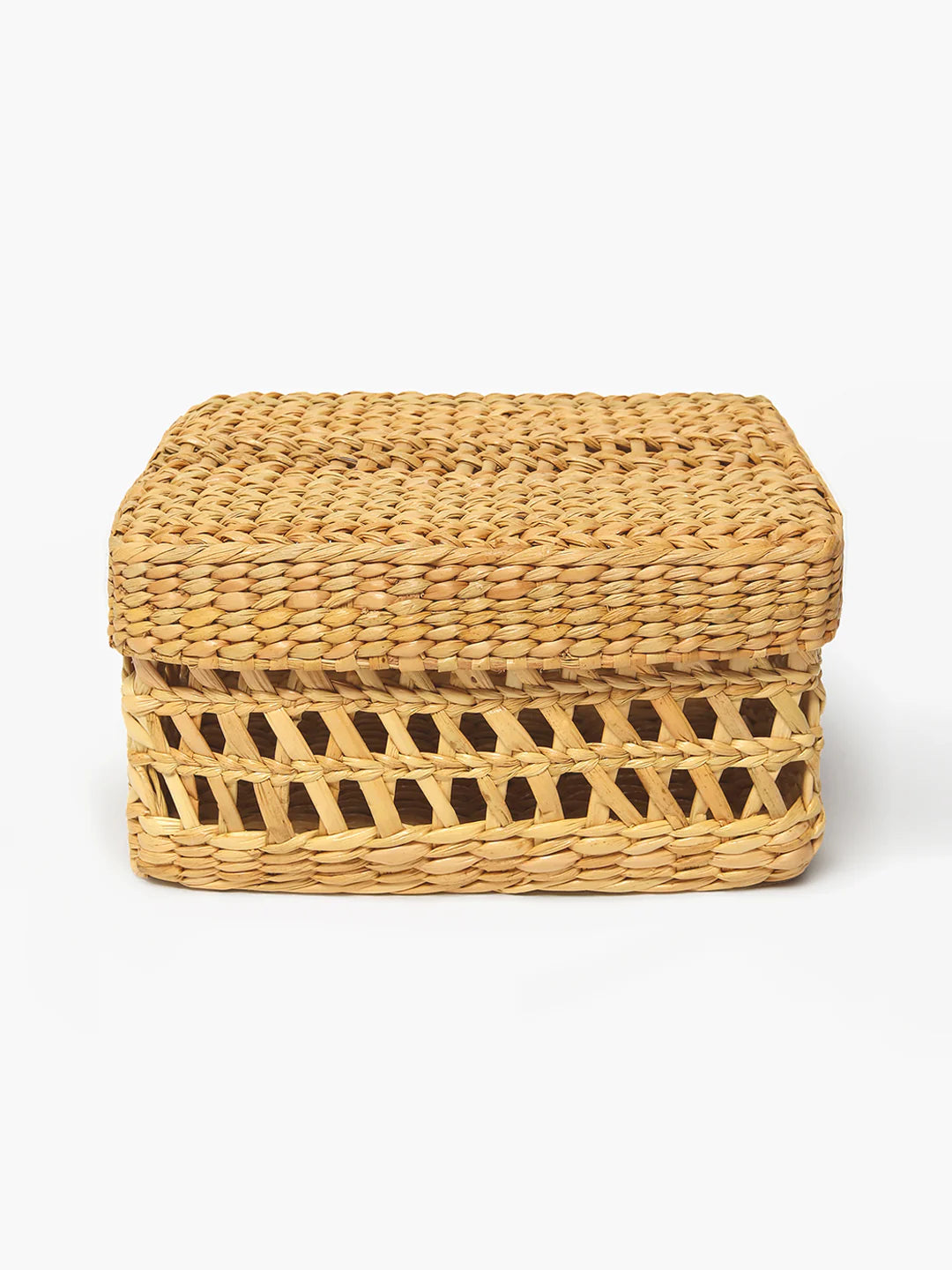 Elevate your storage solutions with our Hand-Braided Seagrass Box featuring a Jali (mesh) pattern and a secure lid. Combining beauty with functionality, this lightweight box is perfect for organizing various spaces while allowing optimal air circulation. Ideal for both decorative and practical uses, it adds a touch of rustic charm to any room.