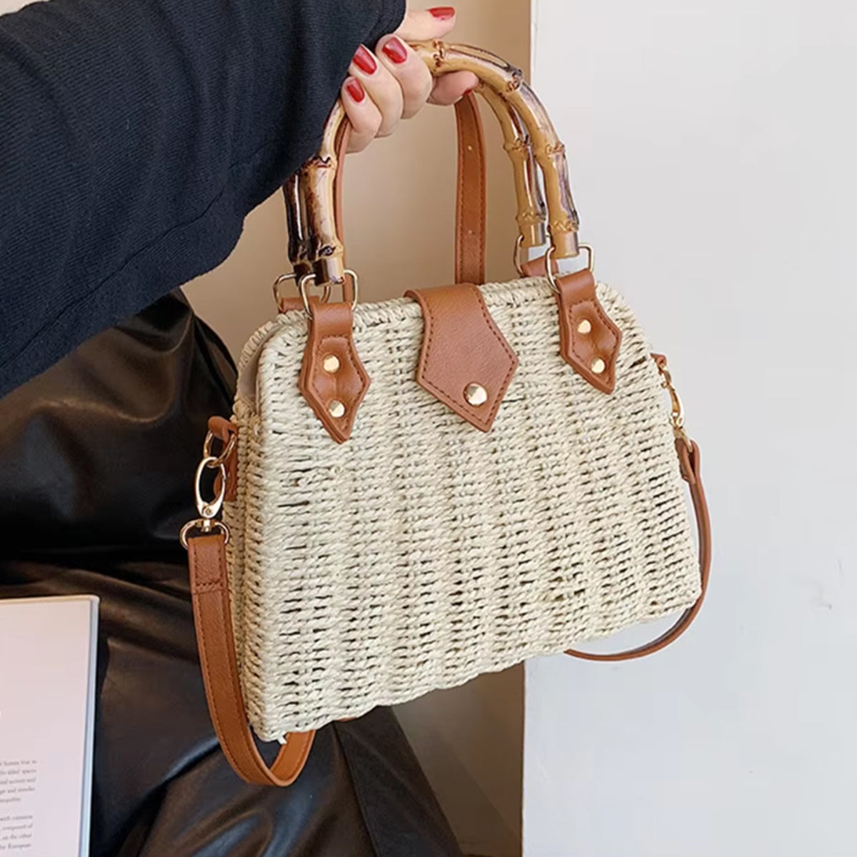 Embrace the art of handwoven beauty with our The Artisan Weave Satchel. Crafted from natural raffia braided ropes, this bag features a magnetic button closure, soft cotton lining, and premium can handles. The adjustable vegan leather shoulder strap adds versatility, making it perfect for any occasion. Each piece is meticulously handwoven by skilled artisans, reflecting our commitment to sustainability and timeless design. Ideal for boho lovers, this satchel bag is a statement of eco-friendly elegance.